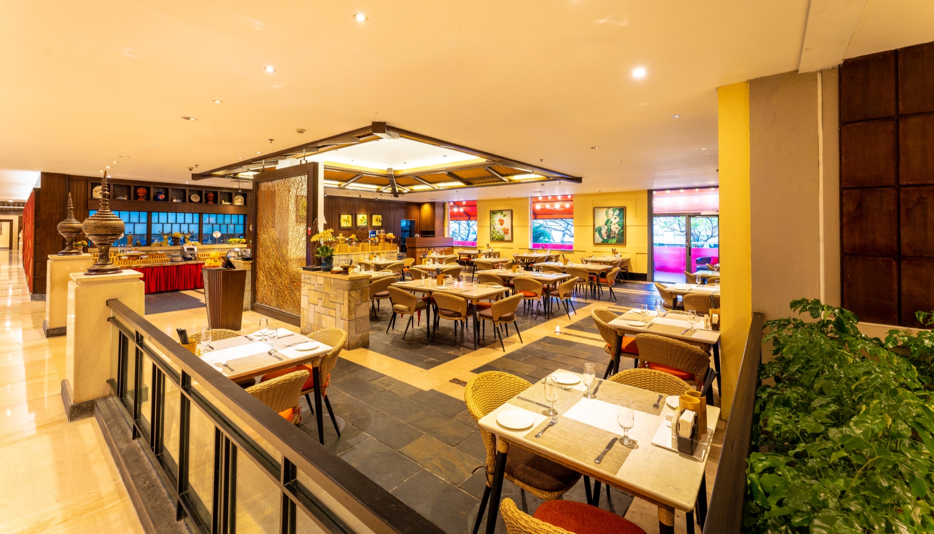 采用落地玻璃,窗外是庭院美景,轻柔的音乐萦绕大堂吧,让人心境格外轻松自在,点上一杯饮品,配上一份精致糕点,或独处,或是会客,或是商务洽谈,都是绝秒不过的处所。在这里,您会忘记时间的流逝,尽情享受乐活时光。