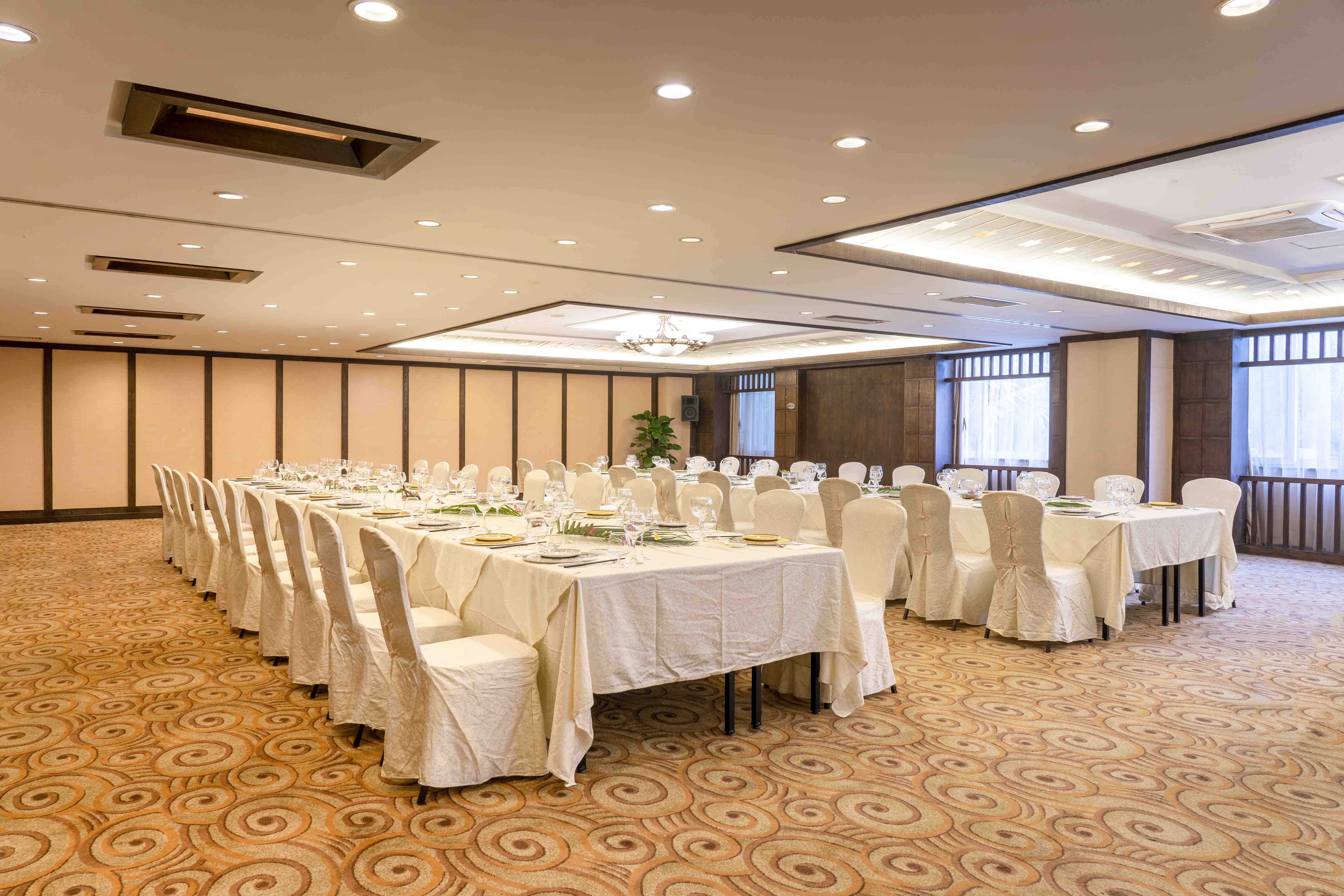 具有欧式高雅情调的棕榈阁,位于酒店会所一隅,分为室内和室外,可同时容纳60人,或是家庭温馨聚餐,或是小型重要会议,或是朋友欢聚一堂,环境优美,绿树微风,香气在空气中散开,让您感受无与伦比的华丽。